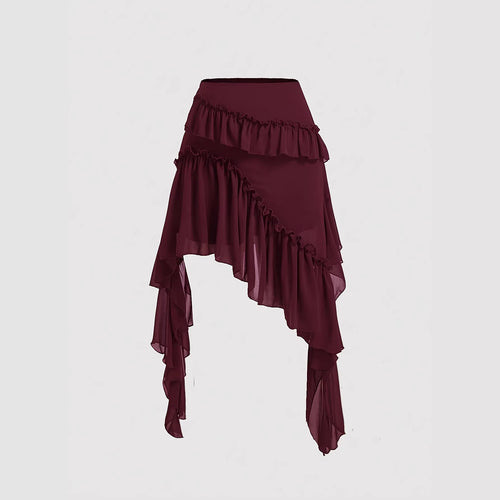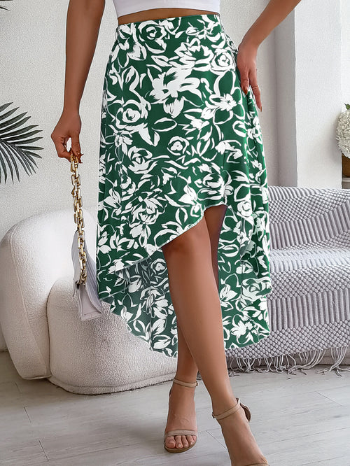 Women's Floral Print Ruffle Hem Midi Asymmetric Skirt
