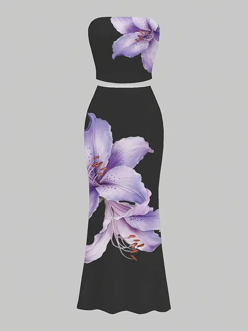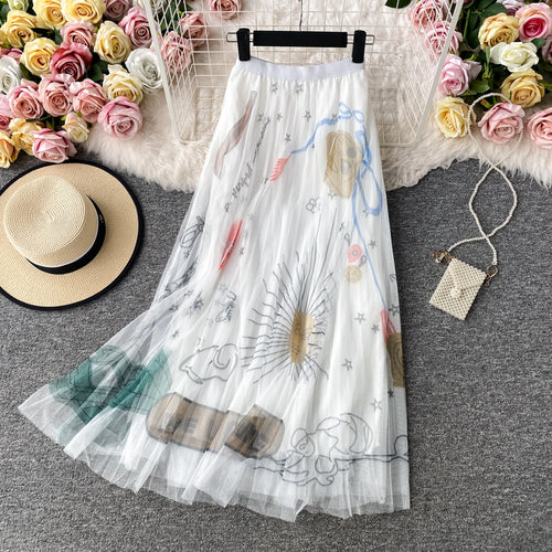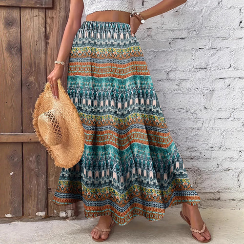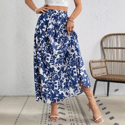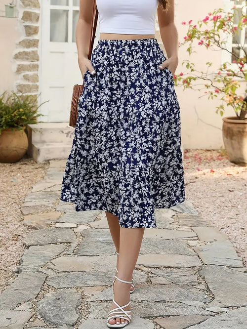 Ladies' Fashion Casual Floral Mid-length Skirt