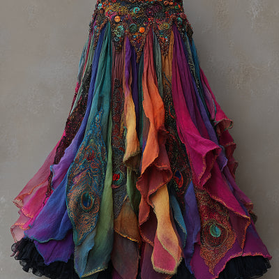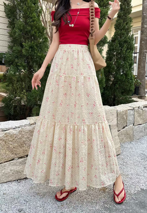 Women's Lace-trimmed Floral Patchwork High-waisted Skirt