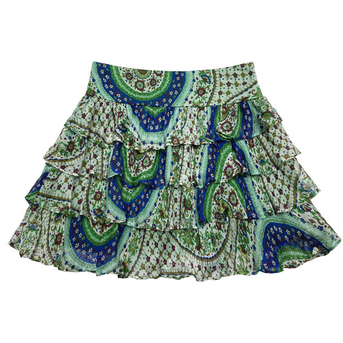 Vintage Crumpled Wave Green Silk Floral Skirt