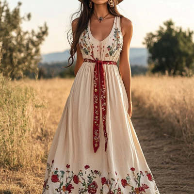Womens Ethnic-style Floral-print A-line Skirt With A Slit