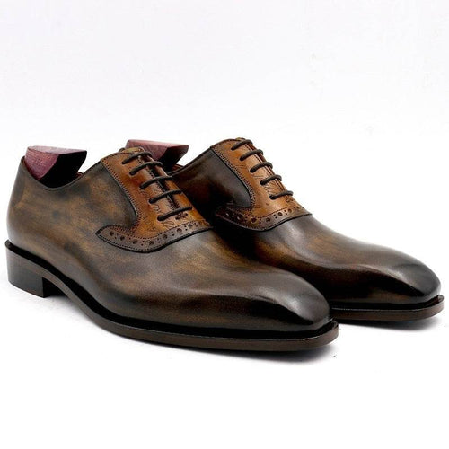 Cowhide Colorblock Handmade Calfskin Sole Lace Up Breathable Men's Shoes