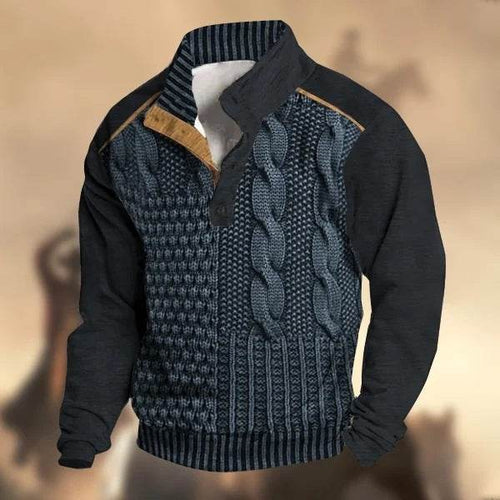 Digital Printing Christmas Series 6-button Henry Collar Long-sleeved Sweater For Men