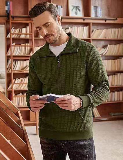 Men's Fashion Comfort And Casual Small Plaid Lapel Sweater Solid Color