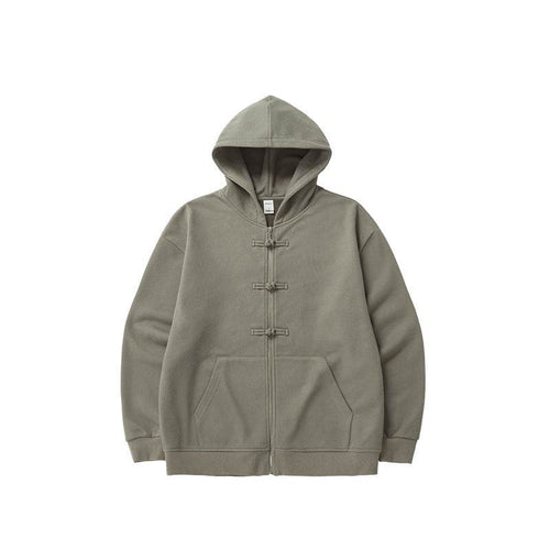 New Chinese Style Buckle Fleece Zipper Hooded Sweater