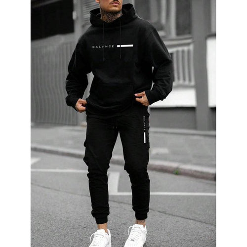New Men's Pullover Hooded Sweater Printing Loose Sweater Suit