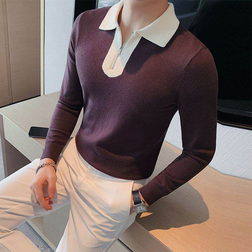 Men's Sweater Long-sleeved Shirt Slim Fit Close-fitting Color Contrast Bottoming Shirt