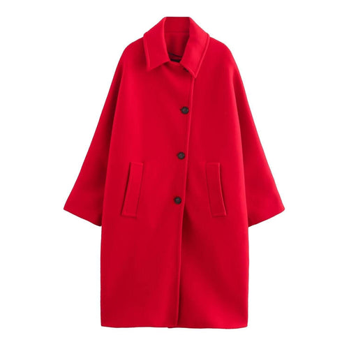 Graceful And Fashionable Lapel Long Sleeve Single-breasted Red Coat For Women
