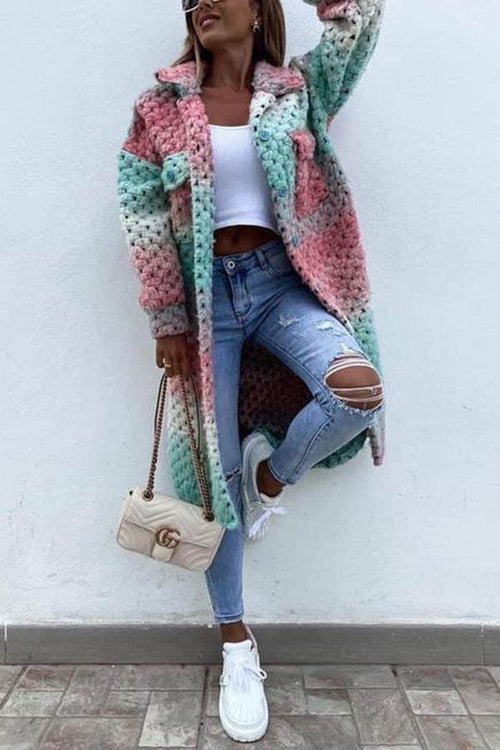 Contrast Color Lazy Style Long Sleeve Knitted Cardigan Jacket