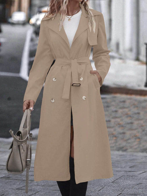 Ladies Bow Solid Color Woolen Long-cut Coat