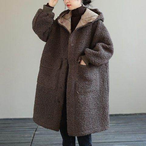 European And American Plus Size Loose Lamb Wool Younger Hoodie Padded Coat Women