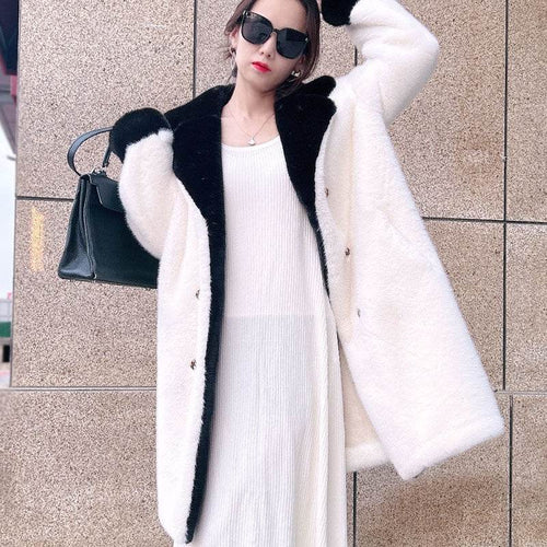 Leopard Print Hooded Toka Long-cut Thick Warm Mink Velvet Trench Coat