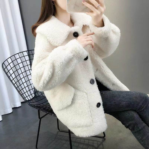 Couple's Autumn And Winter New Loose Zip Windproof Lamb Wool Coat For Women
