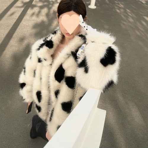 Black And White Love Environmental Protection Furry Coat