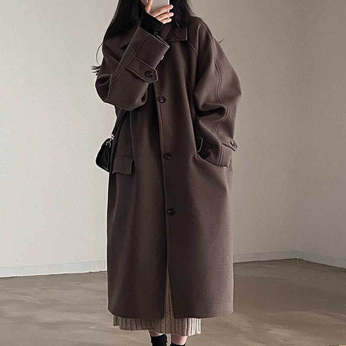 Retro Lapels Single-breasted Loose Mid-length Woolen Coat