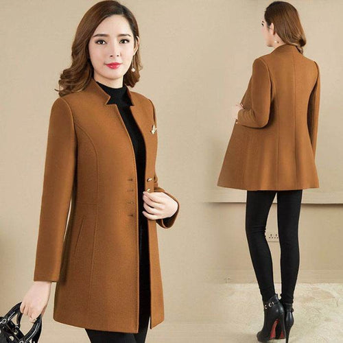 Woolen Coat Mid-length Stand Collar Coat