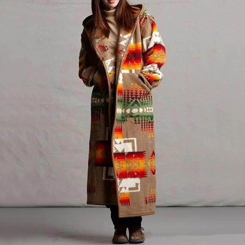 Women's Printing Pocket Long Sleeve Large Coat