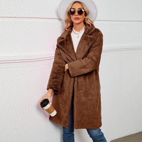Double-sided Plush Large Lapel Casual Cardigan Coat Women