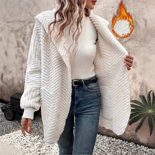 Casual Wave Pattern Double-sided Velvet Hooded Cardigan Coat
