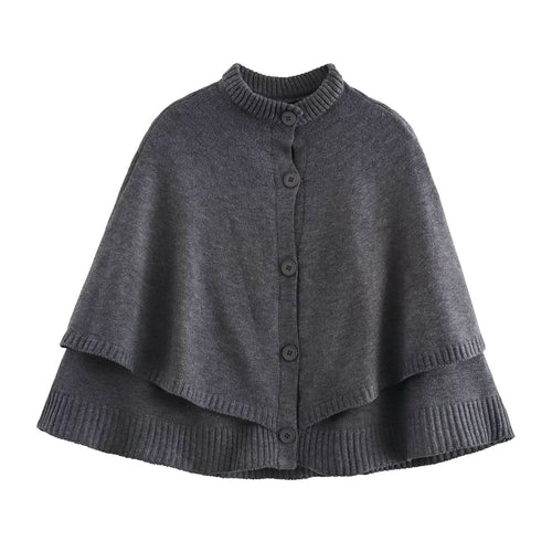 All-match Cloak Design Round Neck Knitted Coat