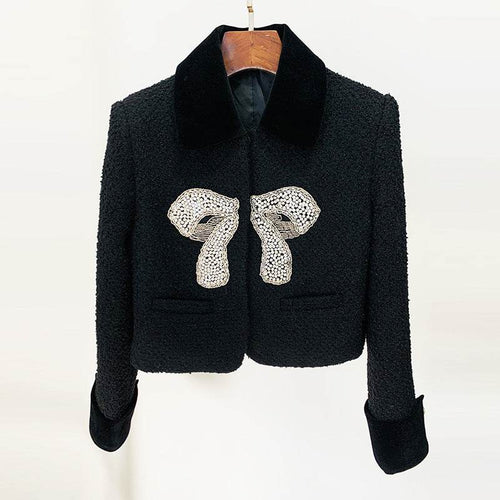Autumn And Winter New Bow Beaded Jacket Coat