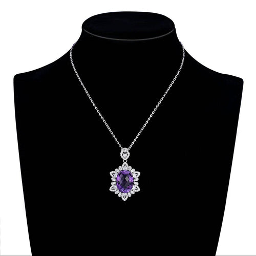 Geometric Denier Amethyst Pendant Sterling Silver Natural Gemstone Clavicle Chain Temperament Necklace