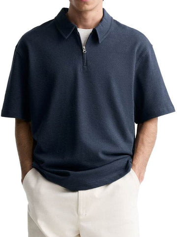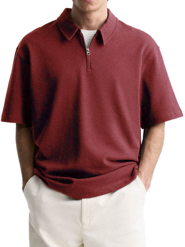 Men's Casual Zipper Polo Shirt Summer Comfortable Breathable Lapels Short-sleeved Top