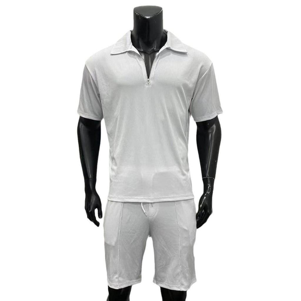 Summer Fashion Mens Clothing Men's Suits New Zipper Polo Casual Short Sleeve Drawstring Shorts Men's Set