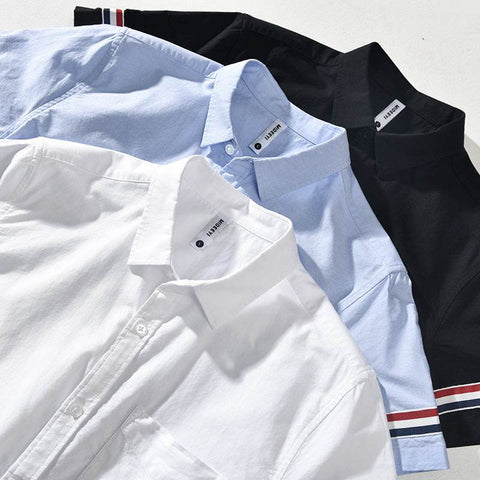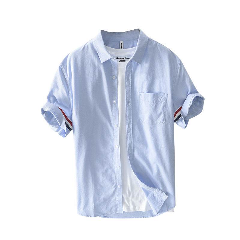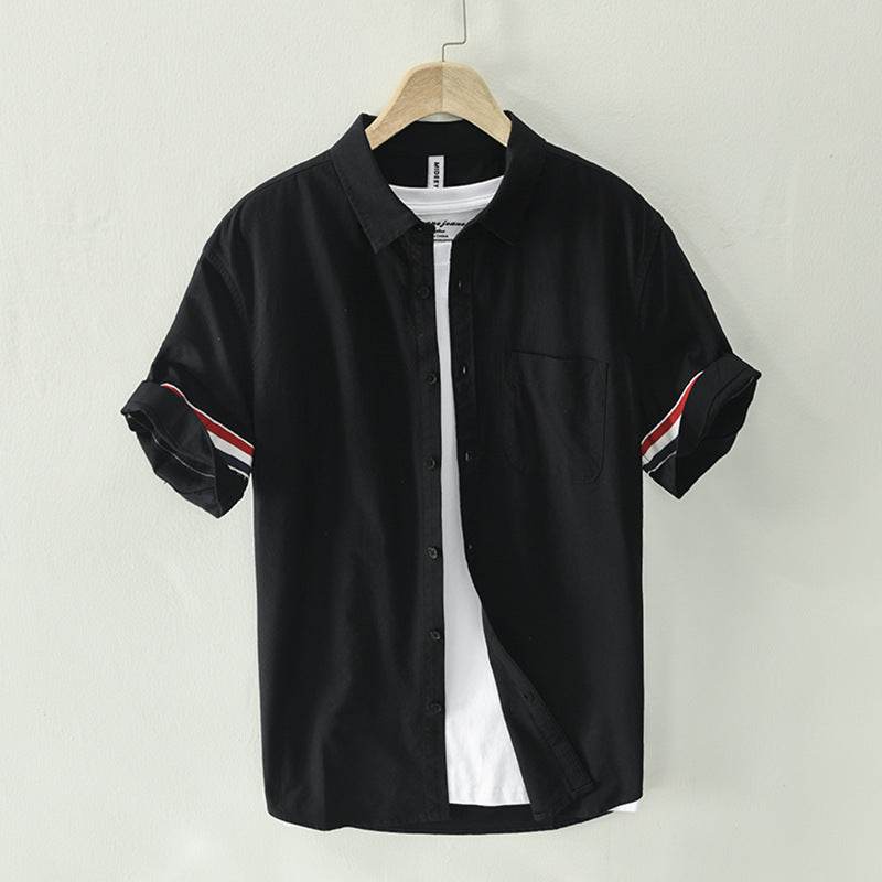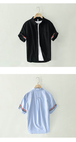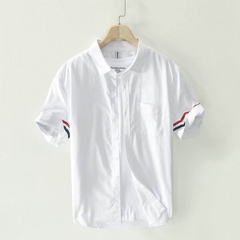 Men's Cotton Casual Handsome Short-sleeved Shirt Trendy Loose Printed Striped