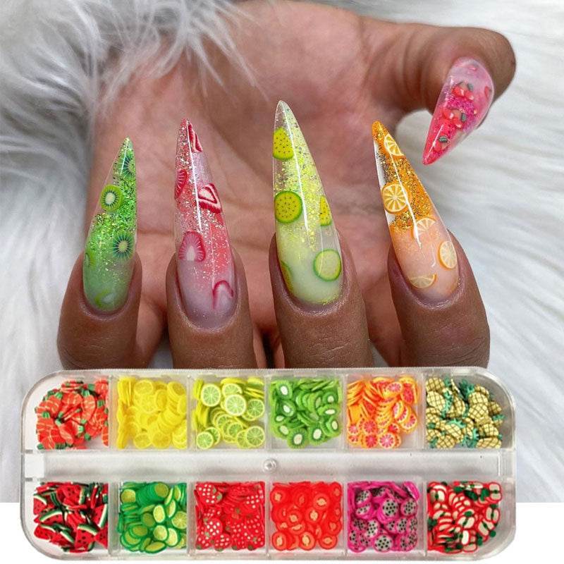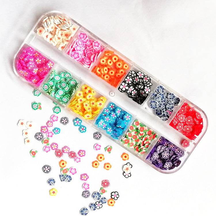 Cross-border Nail Ornament Handmade DIY Crystal Mud Pottery Stripe Flowers Fruit Slice Slimm Pillar 12 Grates