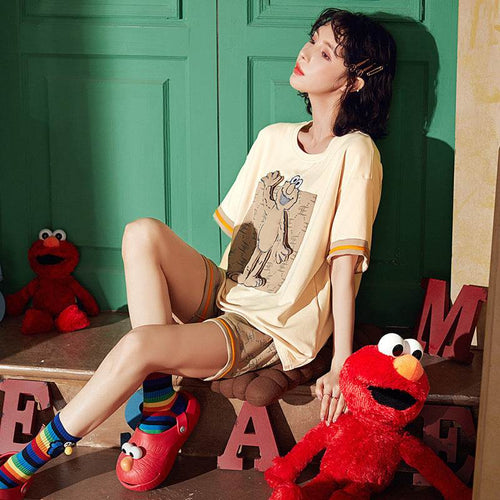 Sesame Street Joint Couple Pajamas Women Summer Cotton Cute Student Two-piece Short Sleeve