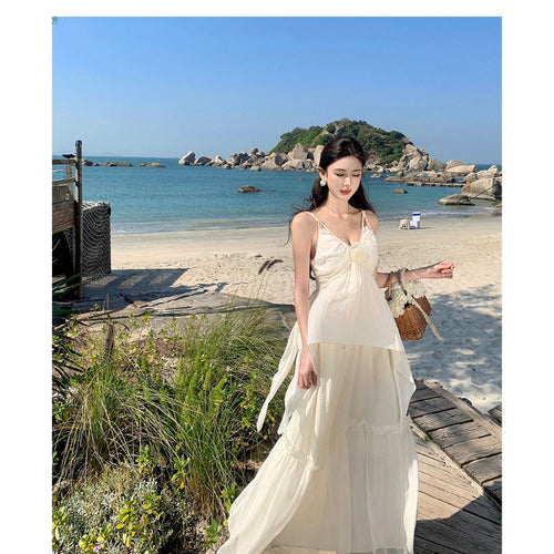 New Sexy Backless Waist-tied Lace-trimmed Cami Dress