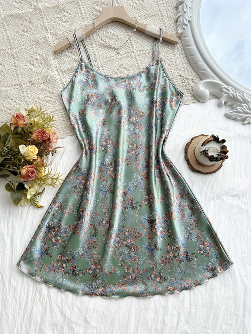 Womens Simple Satin Chiffon Camisole And Robe Set