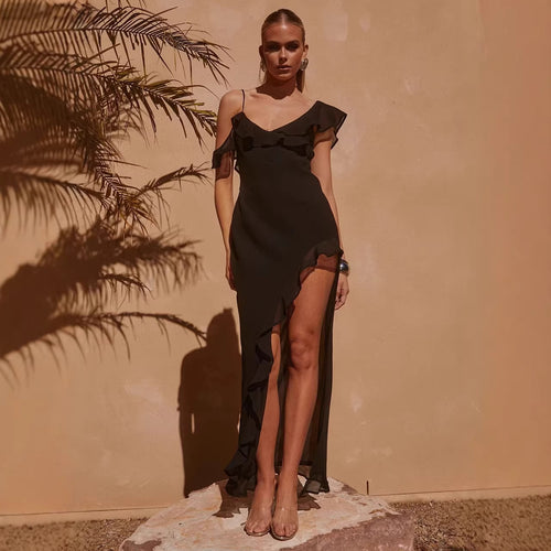 Womens Chiffon Irregular Ruffle-Trim Camisole Dress
