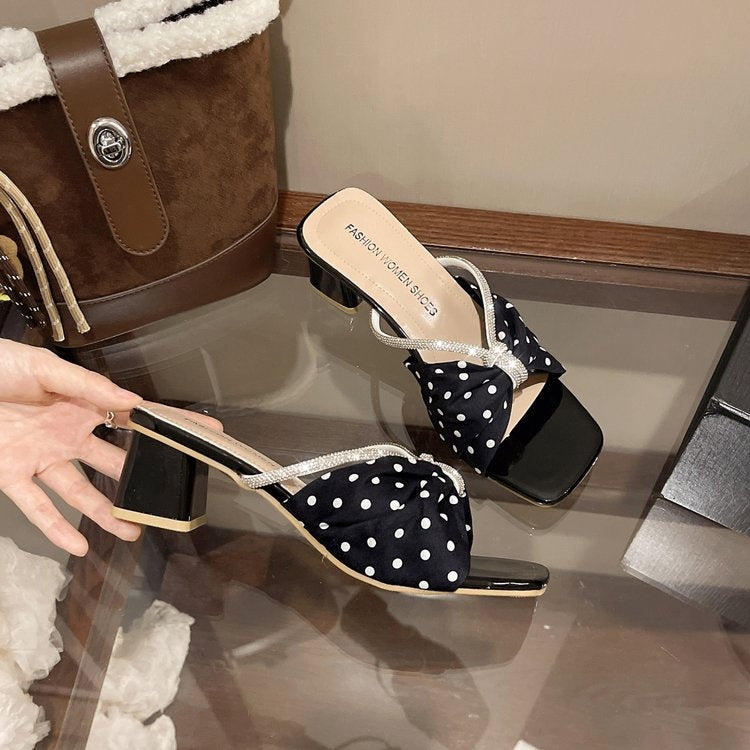 Popular Element: Block Heel Heel Height: Mid Heel Season: Summer 2026 Heel Style: Block Heel Outsole Material: Rubber Leather Feature: Patent Leather Style: One Strap Slide Slippers Upper Material: Cloth