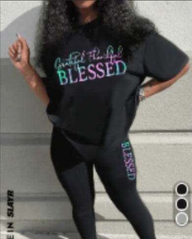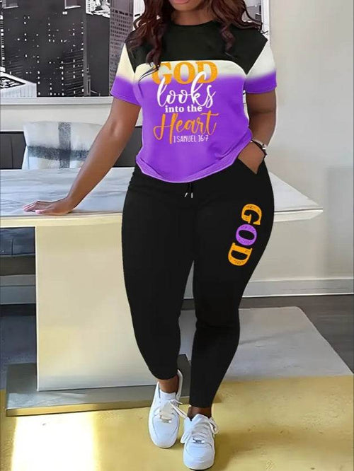 Women's Alphabet Printed Round Neck T-Shirt And Leggings Set