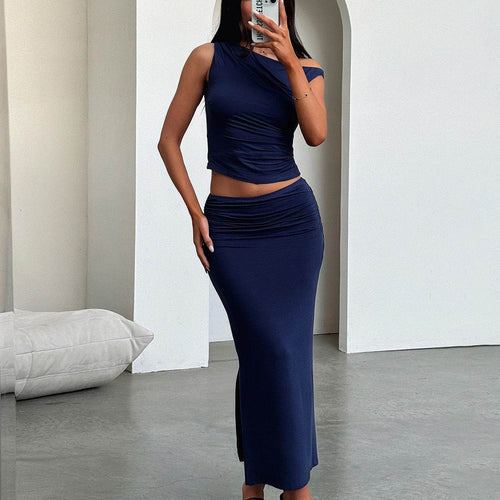 European And American One-shoulder Pleated Off-shoulder Top Sheath Skirt Two-piece Set