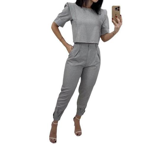 Short Sleeve Top And Trousers Casual Solid Color Two-piece Set