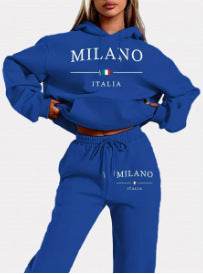 Autumn And Winter Letter Printing Color Block Hooded Sweatshirt Suit