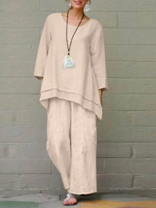 Solid Color National Style Cotton And Linen Casual Long Sleeve Loose Outfit