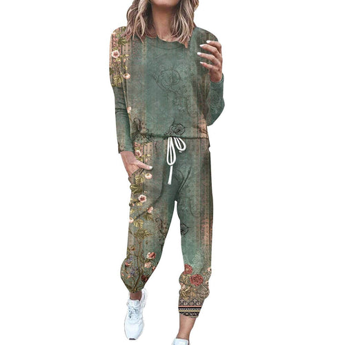 Women's Printed Shirt Long-sleeved Wide-leg Pants
