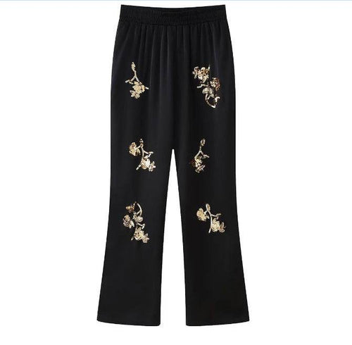 Women's Embroidered Beads Long Sleeve Trousers Suit