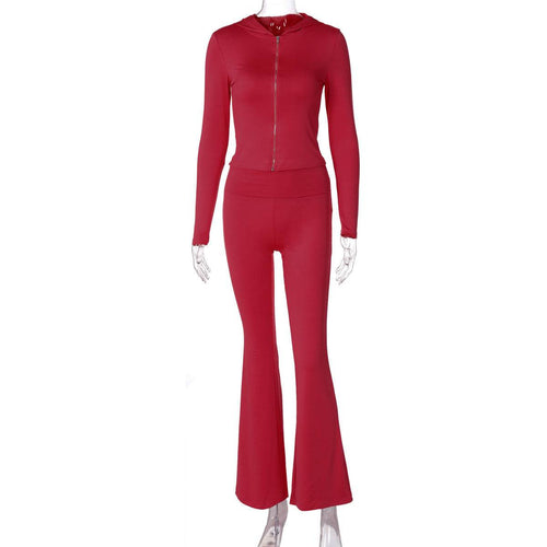 European And American Autumn And Winter Zipper Long-sleeved Hooded Top Flared Pants