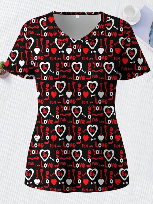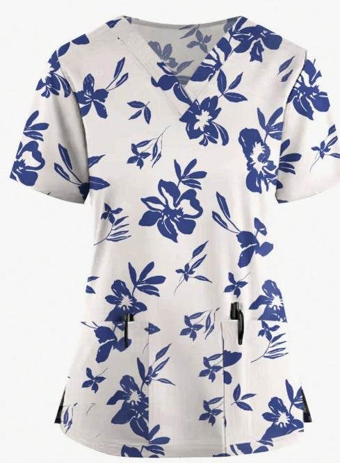 Plus Size Women's Vibrant Print Scrub Top Casual V-Neck Short Sleeve