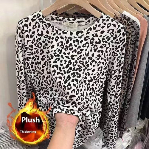 Fashionable Leopard Print Long Sleeve All-match Round Neck Bottoming Shirt