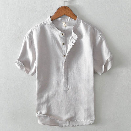 Summer New Casual Linen Shirt Men's Loose Standing Collar