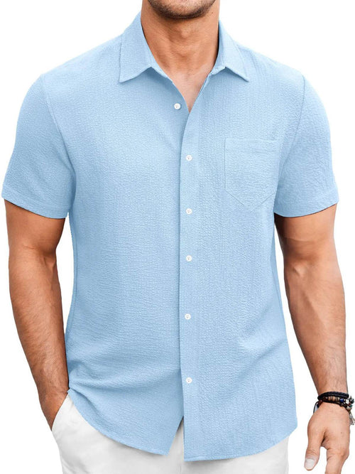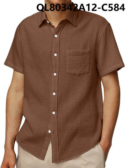 Men's Summer Solid Color Bubble Wrinkle Simple And Comfortable Daily Short Sleeve Shirt