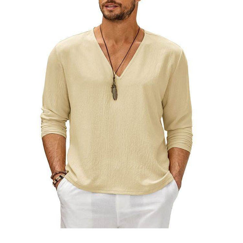 Men's Casual Solid Color Long-sleeved T-shirt Top