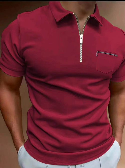 Men's Solid Color Polo Collar Short Sleeve Shirt