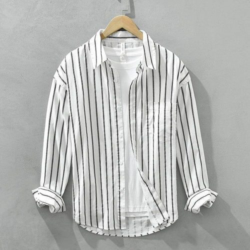 Japanese Style Thin Long Sleeve Shirt Men's Loose Casual Cotton